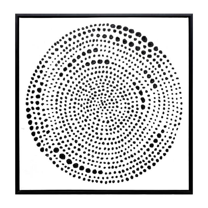 Hypnotic in its graphic simplicity, the Trance enhanced canvas print adds contemporary chic to modern interiors. Featuring a modern mandala in monochromatic tones, this print is embellished with textured paint on a quality cotton canvas. Mounted in a black shadow box frame, Trance works as an understated backdrop in any living, dining or bedroom space.